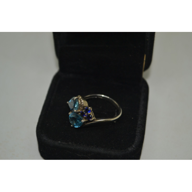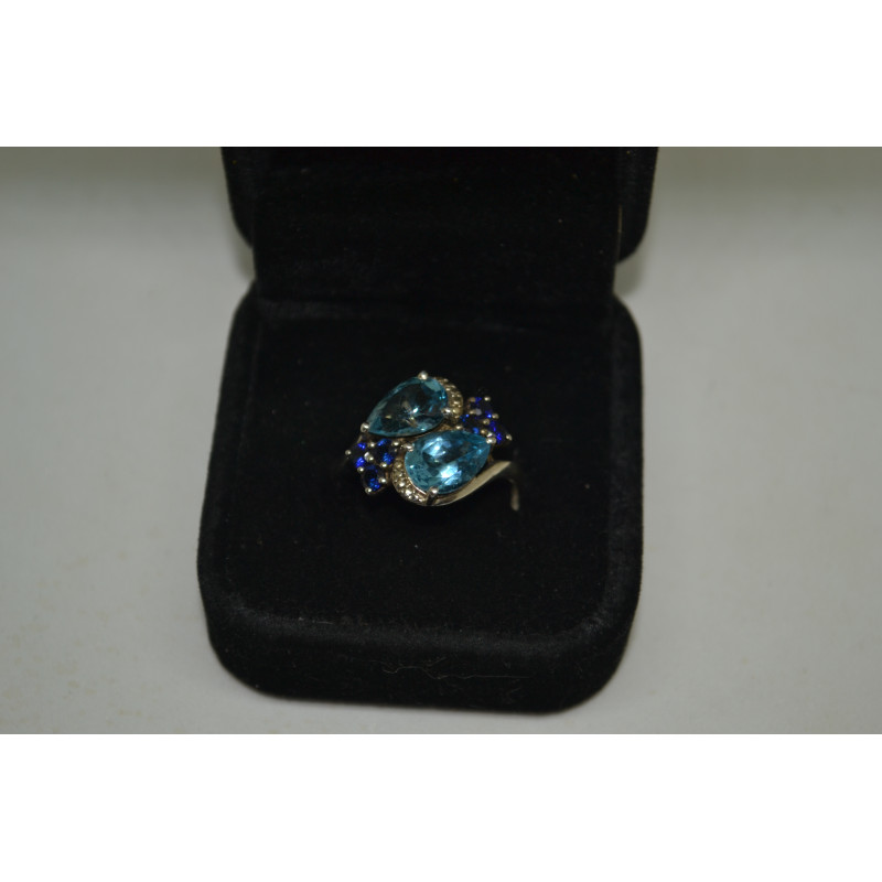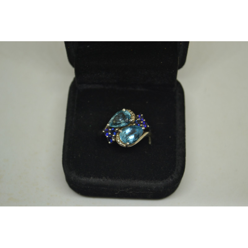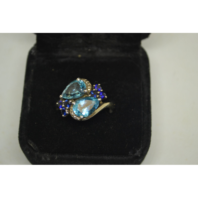 Blue Topaz (Pear) Lab created Blue Sapphire Ring