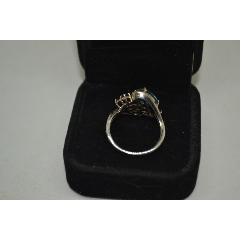 Blue Topaz (Pear) Lab created Blue Sapphire Ring in Platinum Overlay Sterling Silver Nickel free - Size 9 TGW