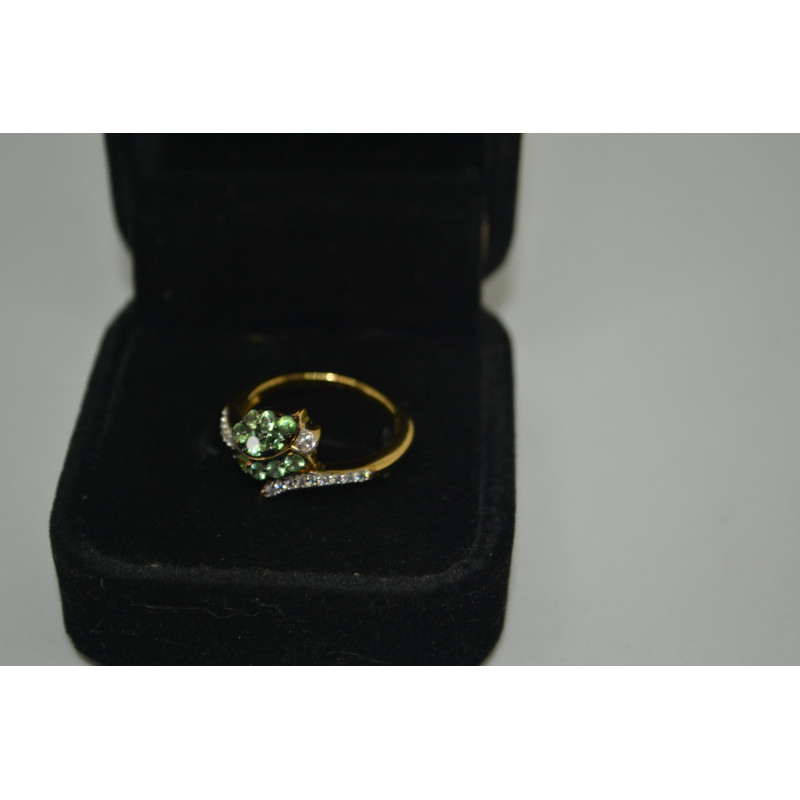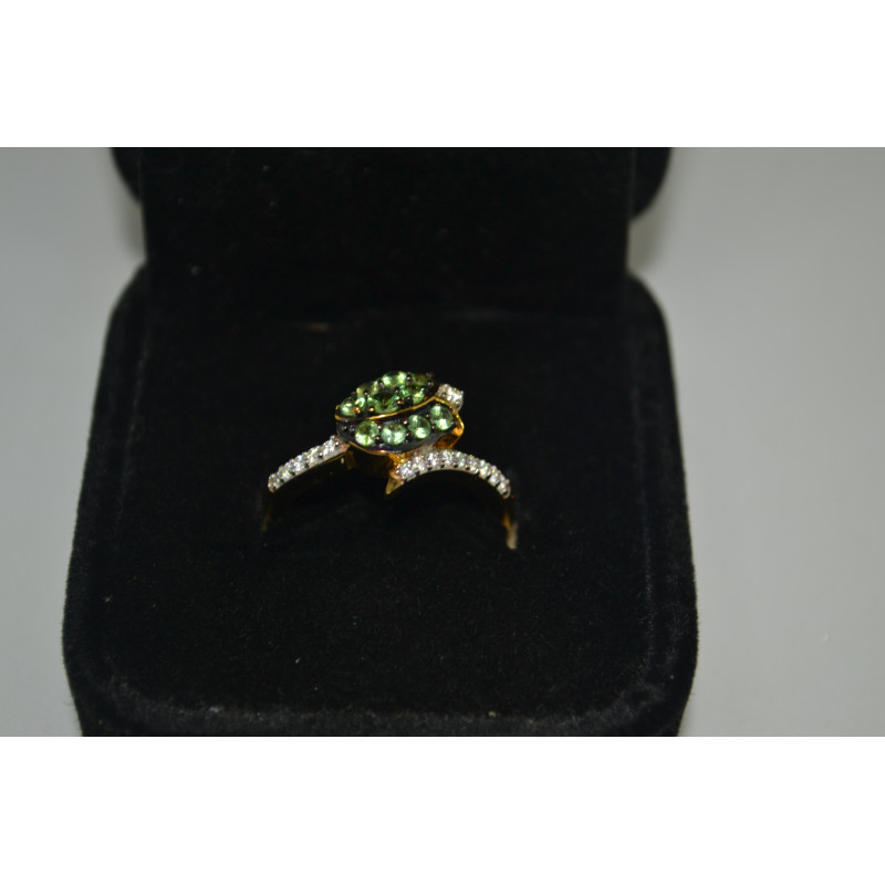 Brazilian Mint Garnet Moissanite Tulip flower ring. 18K Vermeil YG over Sterling Silver. Size 7 0.60 ctw