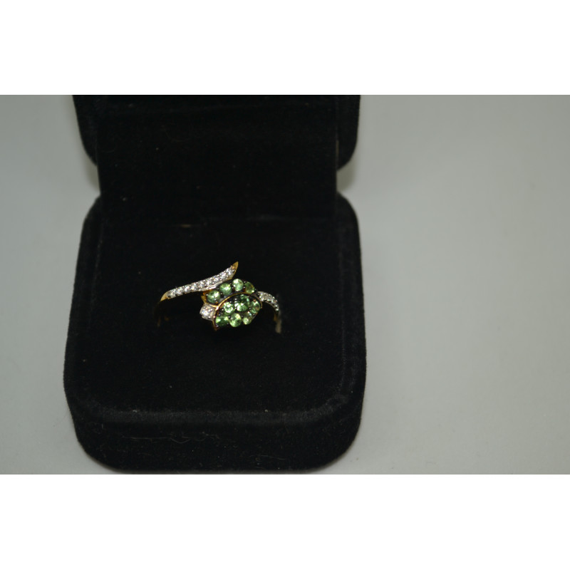 Tags: Brazilian Mint Garnet Moissanite Tulip flower ring. 18K,
